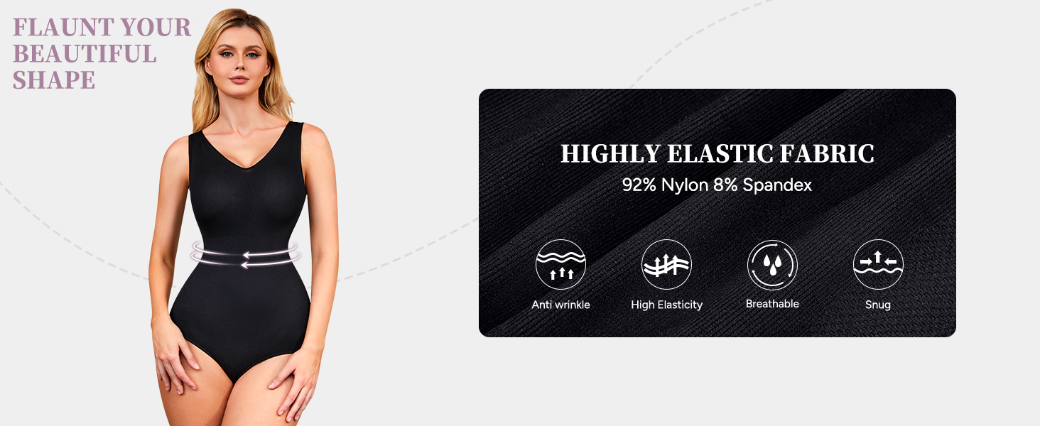 Cloud-Soft Stretch Fabric: Crafted from 92% Polyester and 8% Spandex, this black bodysuits for women delivers buttery-soft comfort with high-elastic tension that moves with you. The breathable, lightweight material ensures zero constriction—wear V neck body suits for womens tummy control from morning meetings to evening outings without a second thought.