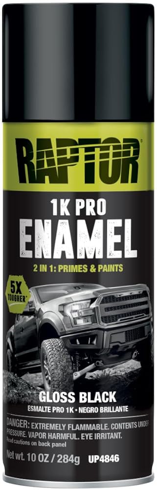 PAINT & PRIMER IN ONE: RAPTOR 1K Pro Enamel combines paint and primer into a single product, allowing direct application to most prepared metals and plastics for faster, easier refinishing