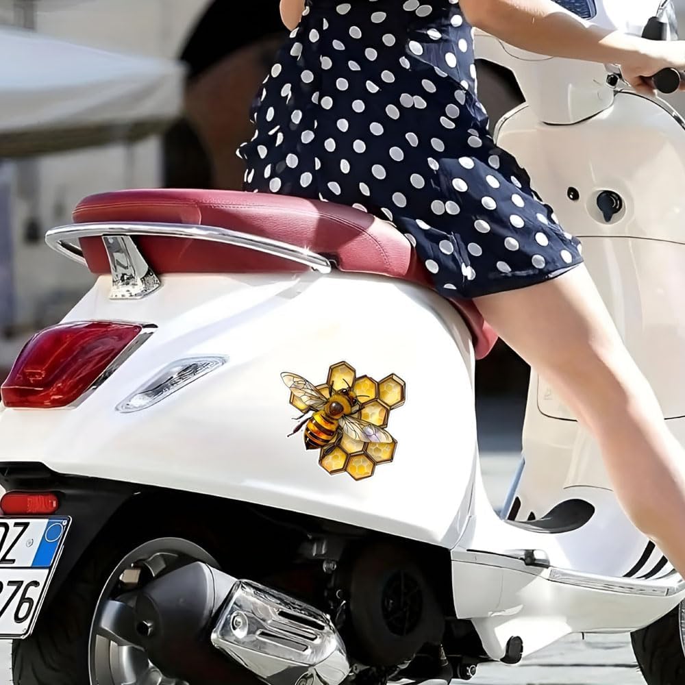 Transform your belongings with this stunning 2-pack of honeycomb bee vinyl stickers. These waterproof decals feature an artistically designed bee surrounded by golden honeycomb cells, creating an eye-catching decorative accent. Perfect for personalizing cars, laptops, windows, walls, SUVs, trucks, and vans, these versatile stickers add a touch of natural beauty to any surface. The detailed illustration combines the warmth of honey-colored hexagons with a beautifully rendered bee, making each sticker a miniature work of art. The durable waterproof construction ensures your decal maintains its appearance through various weather conditions. Whether you're a nature enthusiast or simply appreciate elegant design, these stickers offer a sophisticated way to express your style. Each decal is crafted to be easily applied while providing long-lasting adhesion. Make a statement with these distinctive honeycomb bee stickers that blend natural imagery with contemporary design.