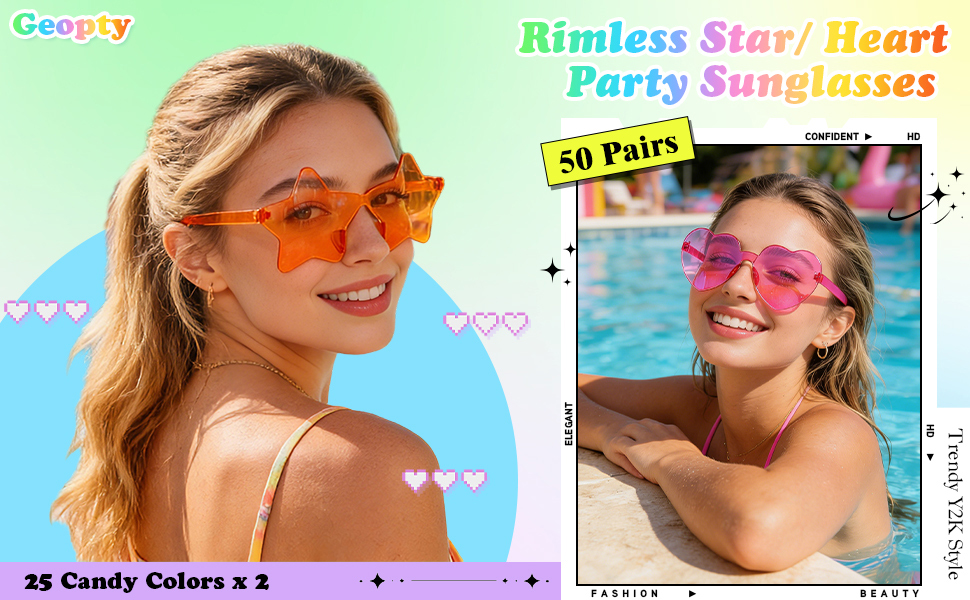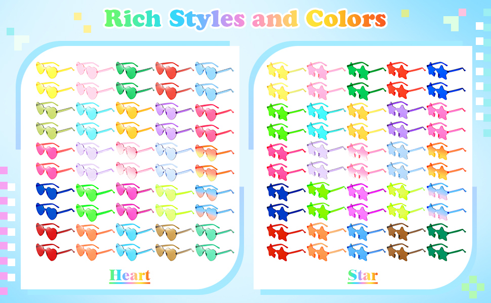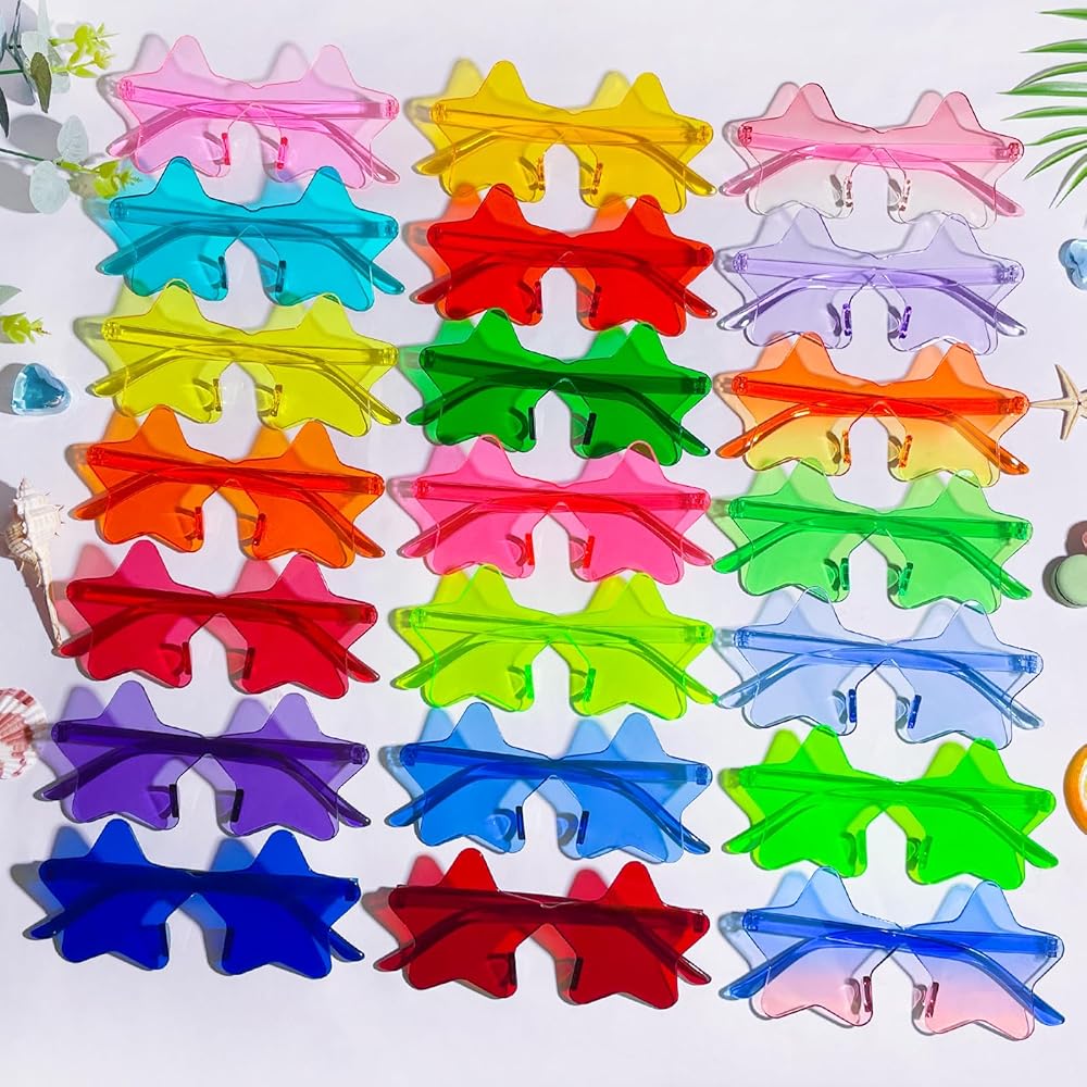 Star Sunglasses Bulk: You will receive 50 pack of candy colors star sunglasses. 25 bright colors, each color has 2 star glasses. Sufficient quantity and rich colors are convenient to match your different clothes and help you show your own style
