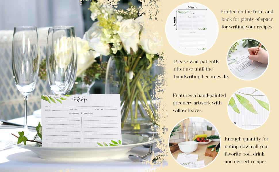 Bridal Showers Gifts: our recipe cards 4x6 are suitable for bridal showers, weddings, housewarming parties, and family recipe sharing; Guests can write and share their favorite recipes with the bride,or if you are looking for a both good looking and practical gift for friends, family or co workers that love cooking or sharing recipes then you have found it