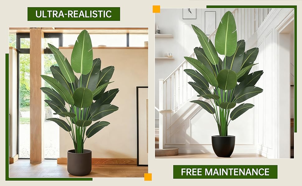 【Ultra-Realistic】This tree has been meticulously crafted through a special process. Unlike real plants, our artificial tree avoids issues like growth limitations and damage from weather or pests, providing timeless elegance and tropical charm in any setting