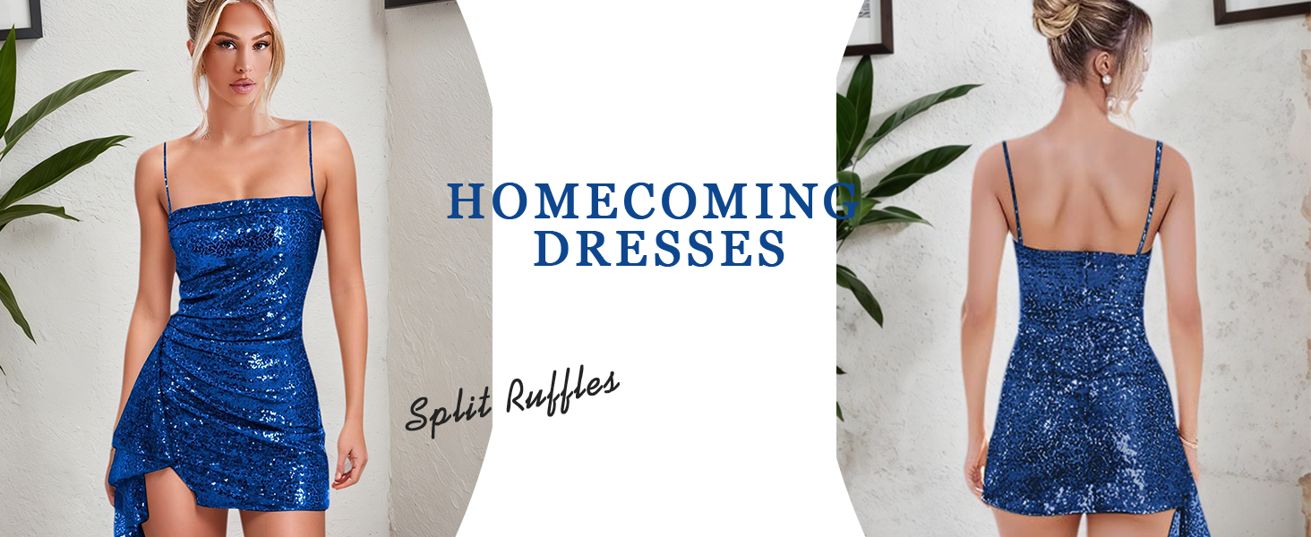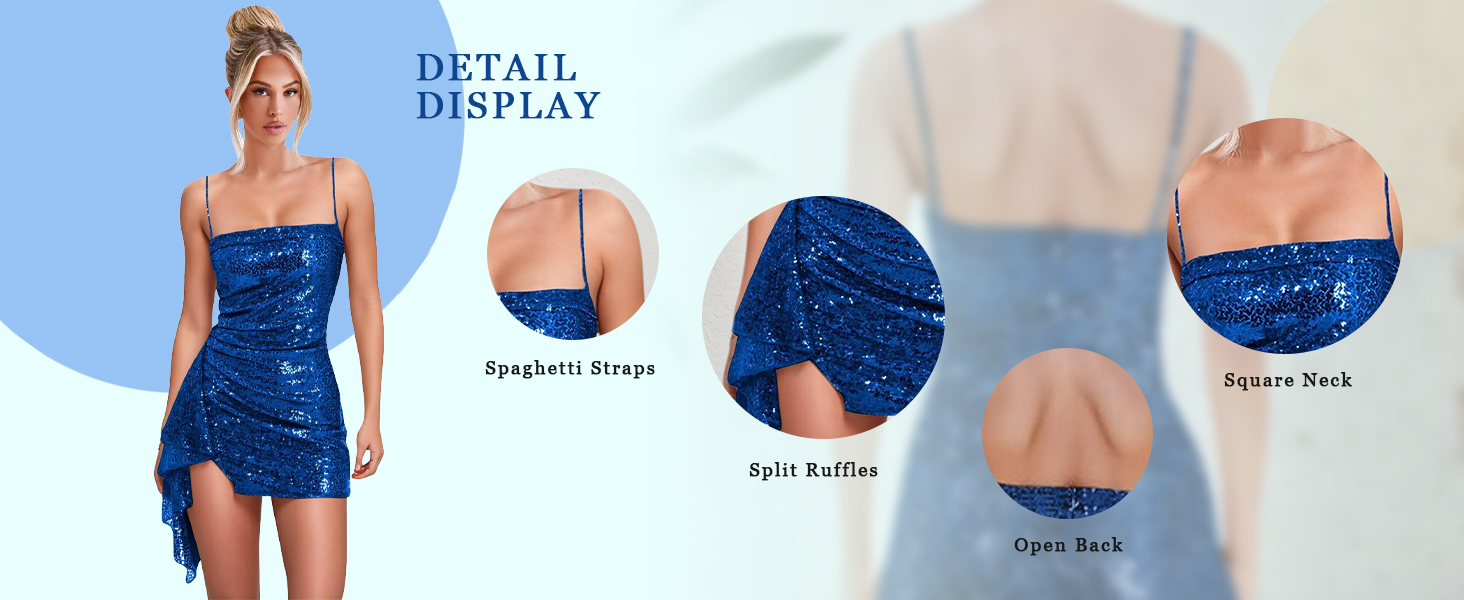 • Feature: Sparkly Sequin Dress for Homecoming, Spaghetti Straps, Square Neck, Ruffles, Sleeveless, Short Dress, Corset, Tight, Petite, Sparkly Prom Dress