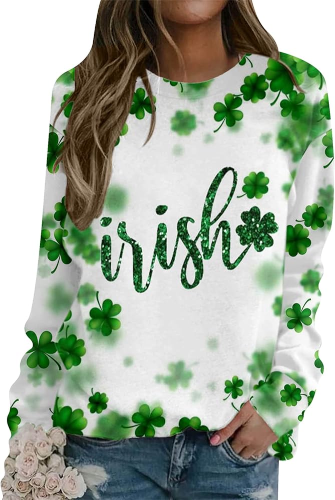 FEATURE: Long sleeve, classic crewneck, funny cute Lucky Clover graphic, casual relaxed fit. The womens sweatshirts makes you look more lovely and charming.