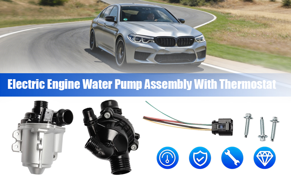 Electric Engine Water Pump Assembly With Thermostat 11517632426 Compatible With BMW 335i 335is 335xi 535i 535xi X1 X4 X6 2007-2016 3.0L Replaces 11517563659 11517588885 11519455978