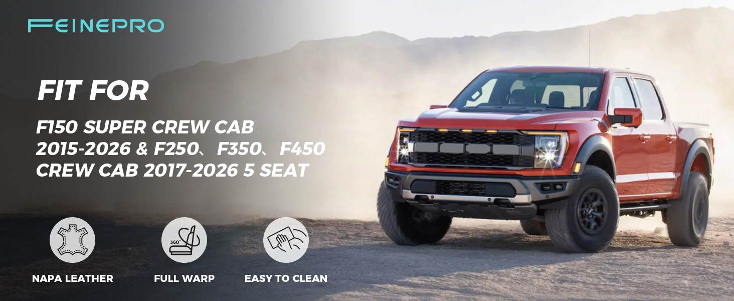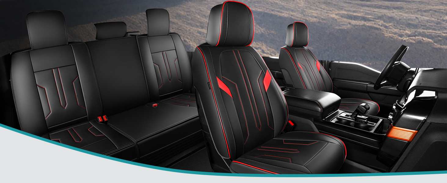 Custom Car Seat Covers - Specially engineered for Ford F150(2009-2025 models)F250 F350 F450 Crew Cab seats (2015-2025 models); Not compatible with Regular/Extended Cab configurations. Precision cut and custom tailored to fit like a glove