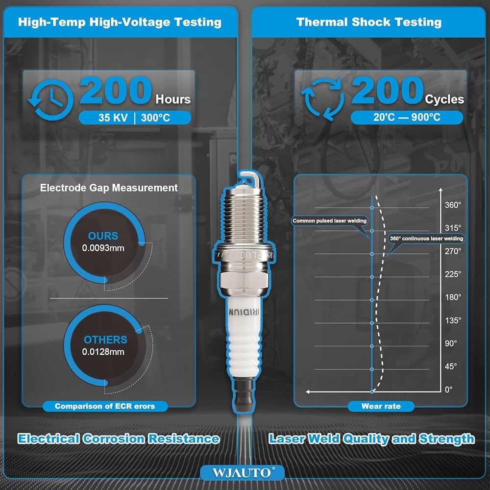 【Wide Compatibility – OEM Fit】WJAUTO Iridium spark plugs are OEM replacement parts designed for excellent engine performance and long-lasting ignition reliability. Compatible with Chevrolet Prizm L4 1.8L1999-2002; Pontiac Vibe L4 1.8L 2003-2008; Toyota Celica L4 1.8L 2000-2005,1999-2008 Corolla L4 1.8L,2003-2008 Matrix L4 1.8L,2000-2005 MR2 Spyder L4 1.8L.
