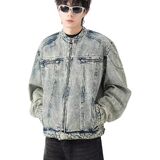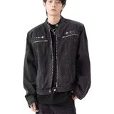 Y2K & Harajuku Style: Achieve the ultimate Y2K aesthetic and Harajuku streetwear look with this mens denim jacket. Its vintage washed finish and stand collar design offer an authentic retro vibe, perfect for fashion-forward outfits.