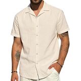 【Comfortable and Breathable】Made from 180g high-quality cotton-linen blend fabric, this linen shirt for men are lightweight and breathable. Designed specifically for hot climates and outdoor summer activities, it keeps you cool even on sweltering days. The special washing process ensures the fabric remains soft and gentle against the skin without causing irritation.