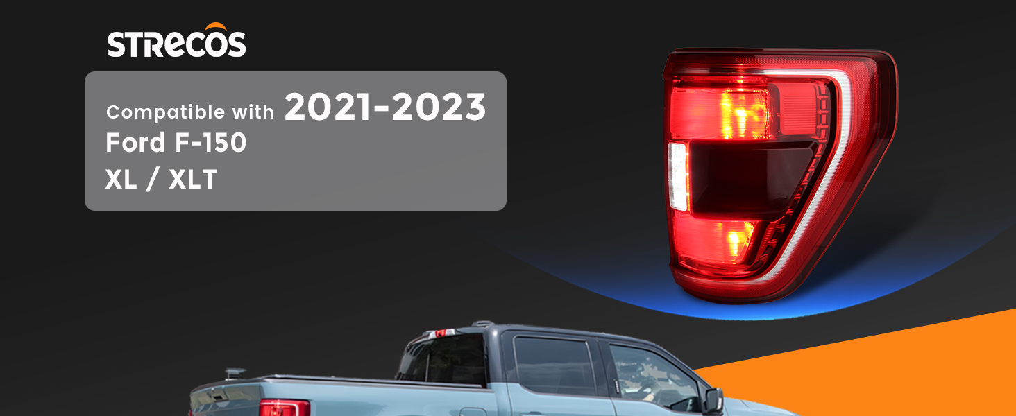 Compatibility: Halogen Type Tail Light Fit for 2021 2022 2023 Ford F150 XLT/ XL models, ONLY Compatible with Factory Incandescent Tail Light Assy w/ Blind Spot Model, replace OEM Part#ML3Z-13405-C/ ML3Z13405C/ ML3Z-13405-B