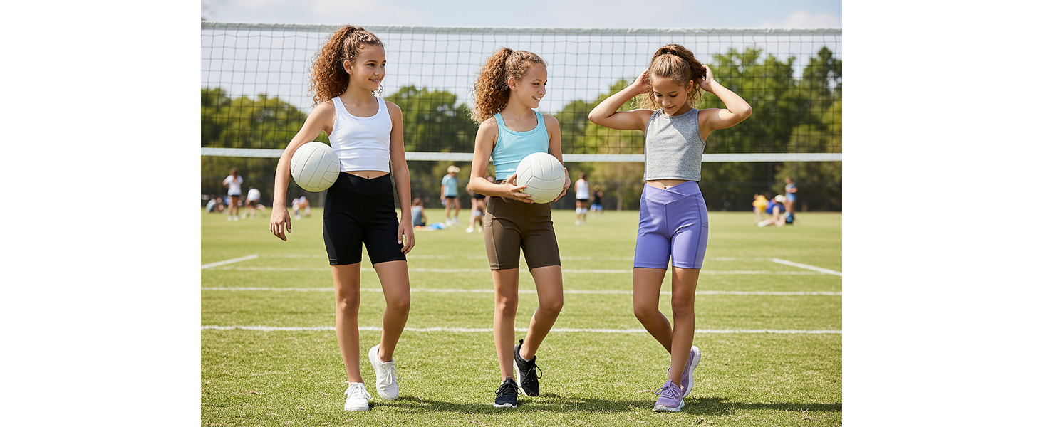 [Ice-Feel Fabric & Superior Breathability] Volley ball shorts for girls crafted from 93% polyester and 7% spandex with flatlock seamsto minimizes friction discomfort during exercise , girls workout shorts provide a "cool-to-the-touch" sensation, soft, lightweight, and highly breathable.The high-performance fabric wicks away sweat instantly and dries fast, keeping your active girls cool and fresh even during the hottest summer days or intense gym sessions