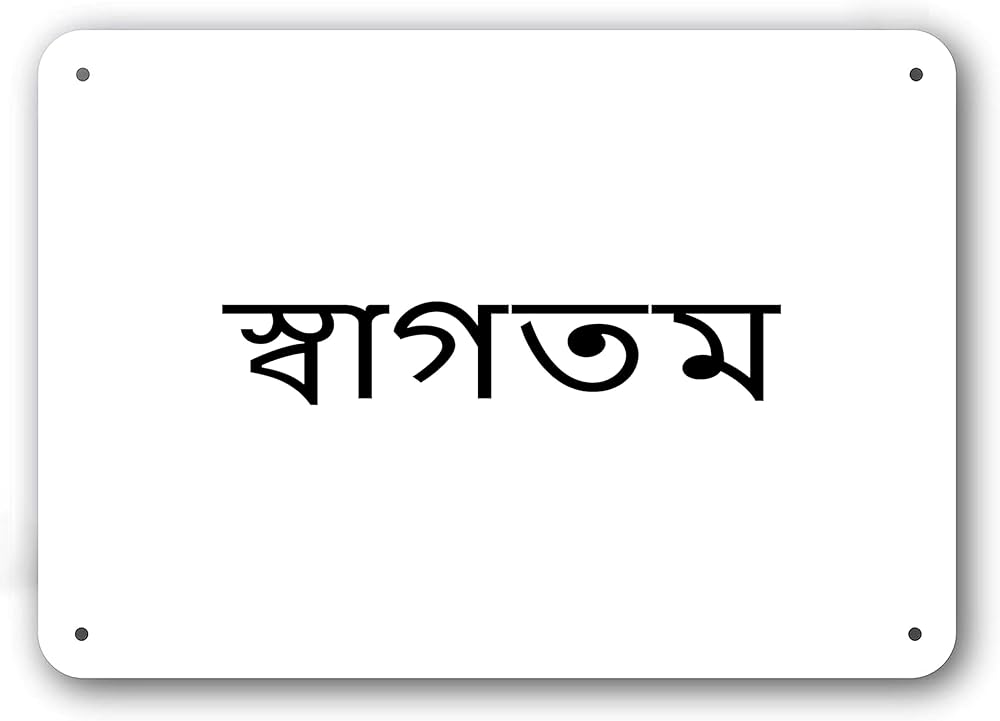 Door Sign - Welcome in Bengali Language - Decorative White Aluminum in Kuwait