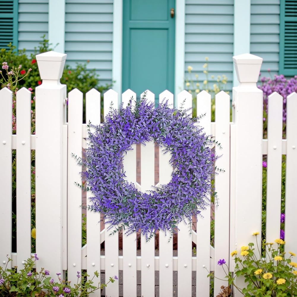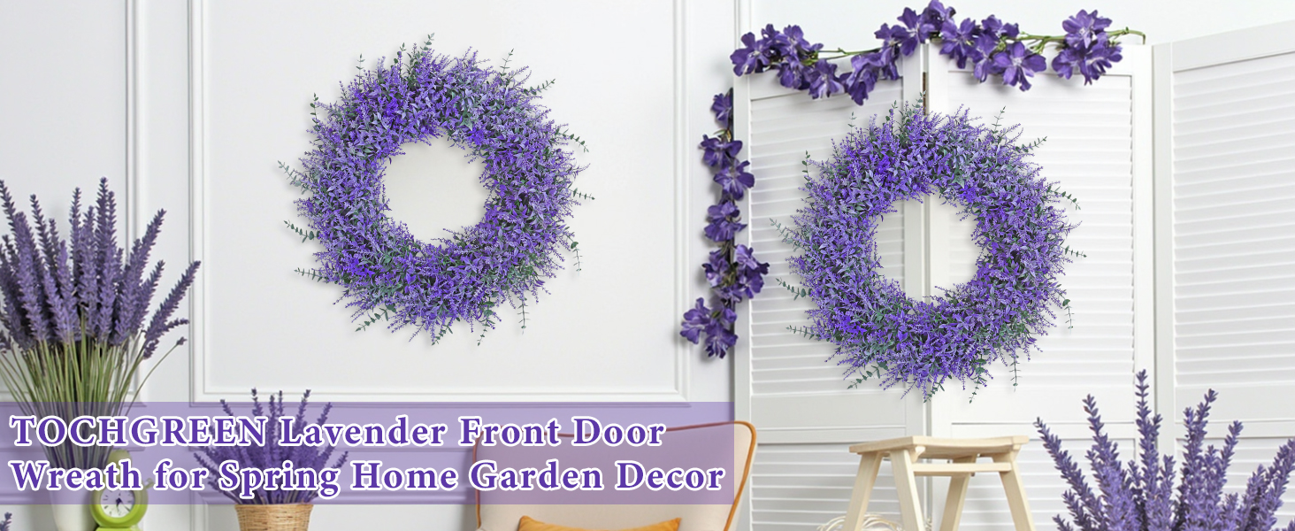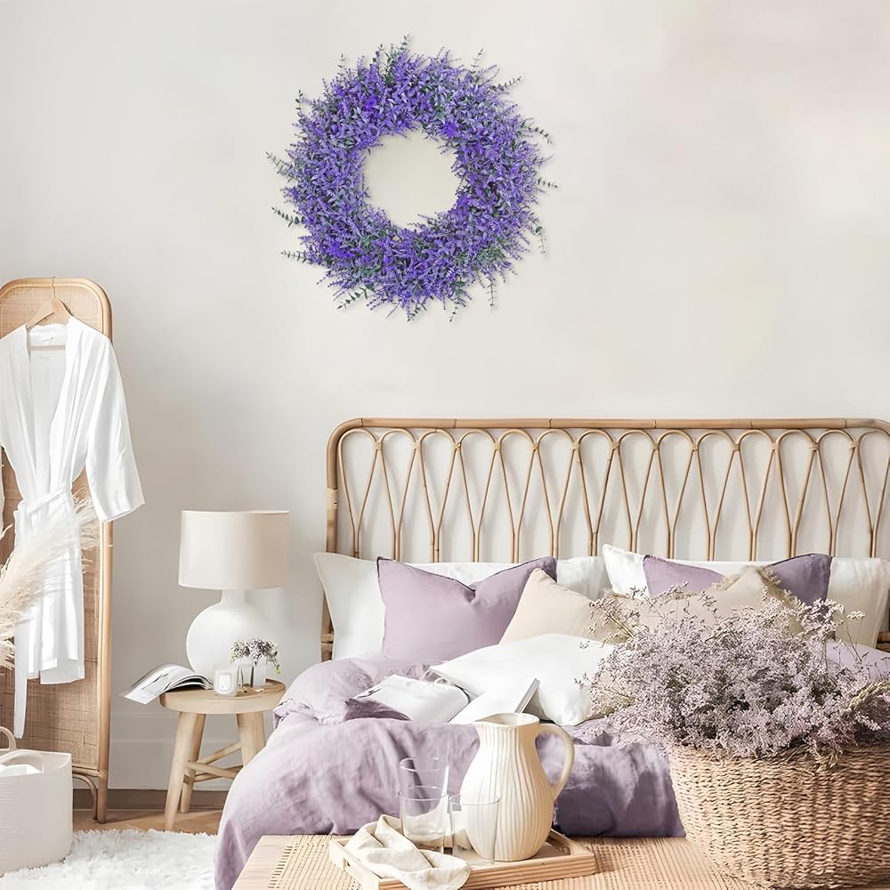 【Spring Summer Wreath Decoration】Our purple lavender wreath can be used all seasons,perfect for spring,living room,bedroom,kitchen,walls,window,porch,fireplaces,corridors,balcony,farmhouses,etc.Adorned with delicate and elegant light purple lavender flowers that won't fade or wilt,it will continue to be a beautiful focal point for your doors and windows throughout the year.This lavender wreath can be used for all types of indoor outdoor summer spring decorations for home and provide your home a feeling of natural and vitality.