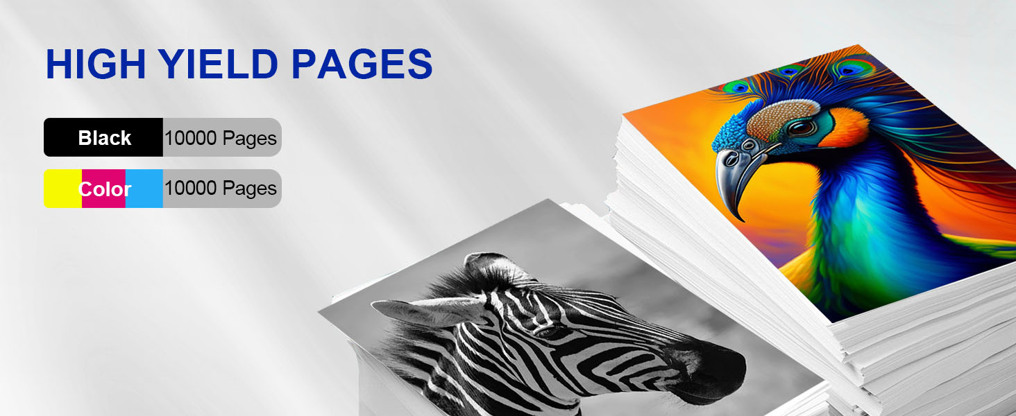 High Page Yield: 10000 pages for per black Ink cartridge,10000 pages for per color Ink cartridge at 5% coverage of A4 paper