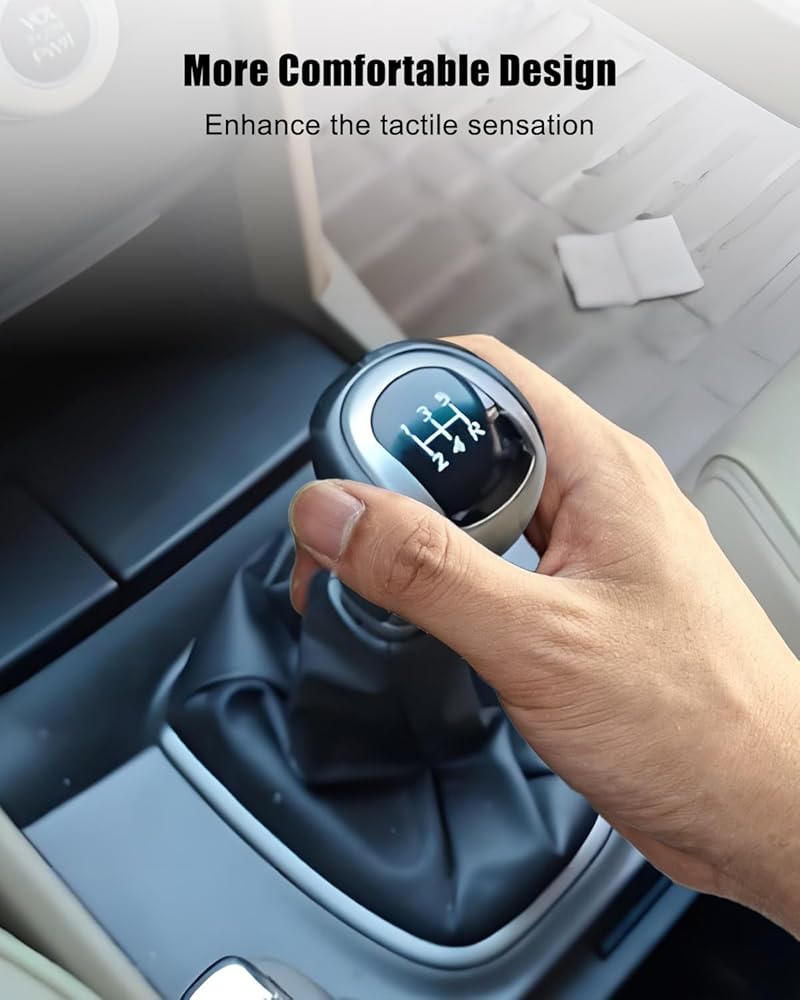 Enhanced Driving Feel: Sliver knob features an ergonomic five-speed shift knob design, providing a comfortable grip and even force distribution. This helps you achieve a smoother gear shifting experience, effectively reducing slippage and misalignment, making daily driving more relaxed and natural