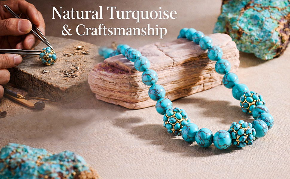 💎BRING POSITIVE ENERGY🔨: Turquoise is loved as a symbol of protection, courage, and calm.Turquoise beaded necklace for women design adds a pop of uplifting color to everyday outfits,great for manifesting good vibes at work, travel, festivals, and weekend adventures.Bohemian charm,real turquoise ball necklaceis believed to attract prosperity and promote inner calm, making it the perfect spiritual companion for everyday wear.