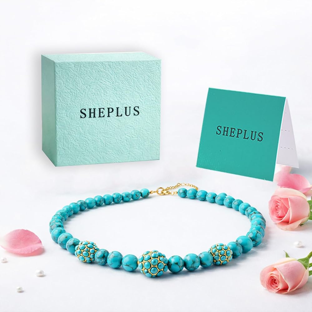 💝PERFECT GITS for MOM🌟:Sheplus turquoise beaded gold necklace is meaningful gift for mom from daughter or son. Comes in a gift box, with gift card and jewelry-cleaning cloth,perfect for Mother's Day, Birthday, Christmas, Thanksgiving, Valentine's Day, or "just because.”