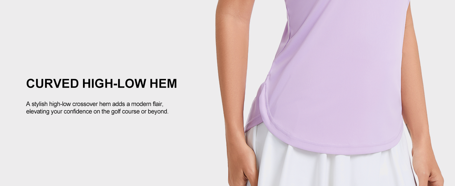 【Flattering & Versatile Fit】The stylishly curved,high-low hem provides enhanced coverage and creates a modern,feminine silhouette that looks incredible tucked or untucked.These ladies golf shirts pair effortlessly with skirts,shorts,or leggings,seamlessly transitioning your look from the fairway to the cafe.