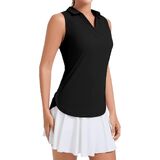 【Unleash Your Perfect Swing】Engineered for peak performance,this top's sleeveless cut and wide side slits offer total freedom of motion.This stretchy womens collared shirt moves with you,never against you,ensuring an unrestricted, powerful swing on the golf course or a swift backhand in tennis.