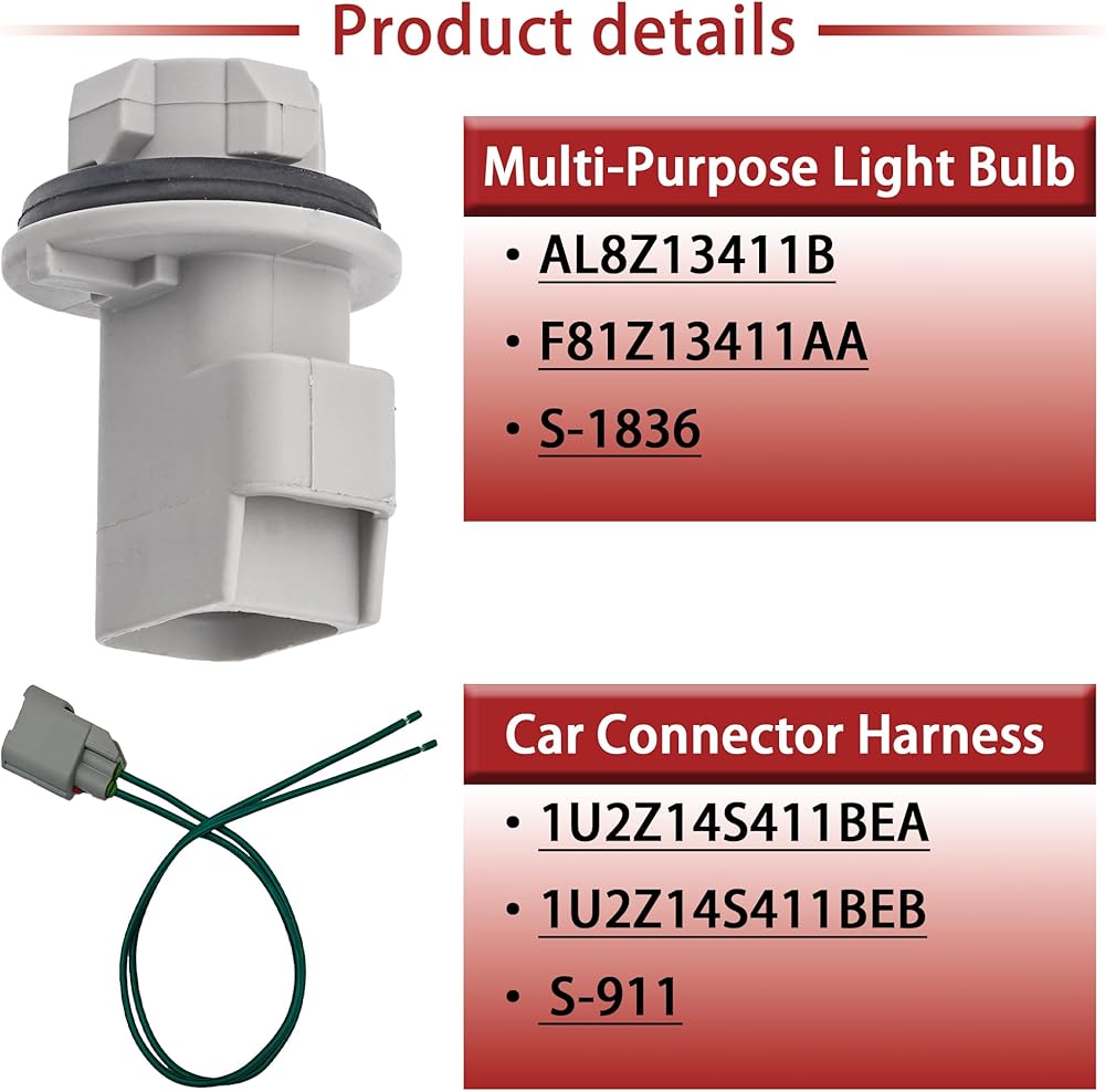 Automotive Multi-Purpose Light Bulb Socket AL8Z13411B(With Connector harness 1U2Z14S411BEA) Compatible with Ford F-150(24-01)/Lincoln MKX(14-07) and more,Socket for Back-Up Light/Side Marker