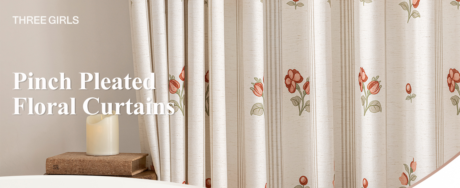 Elegant Pinch Pleated & Pink Floral Block Print Design - The classic pinch pleated style adds a polished, sophisticated touch that complements various home decors, including farmhouse, cottage, vintage, and modern styles. The delicate pink floral block print brings a soft, romantic vibe, helping you create a warm, inviting space for your family and guests.