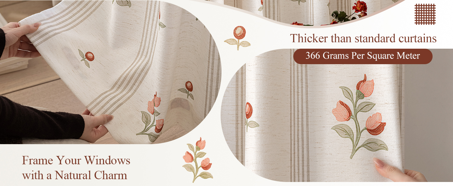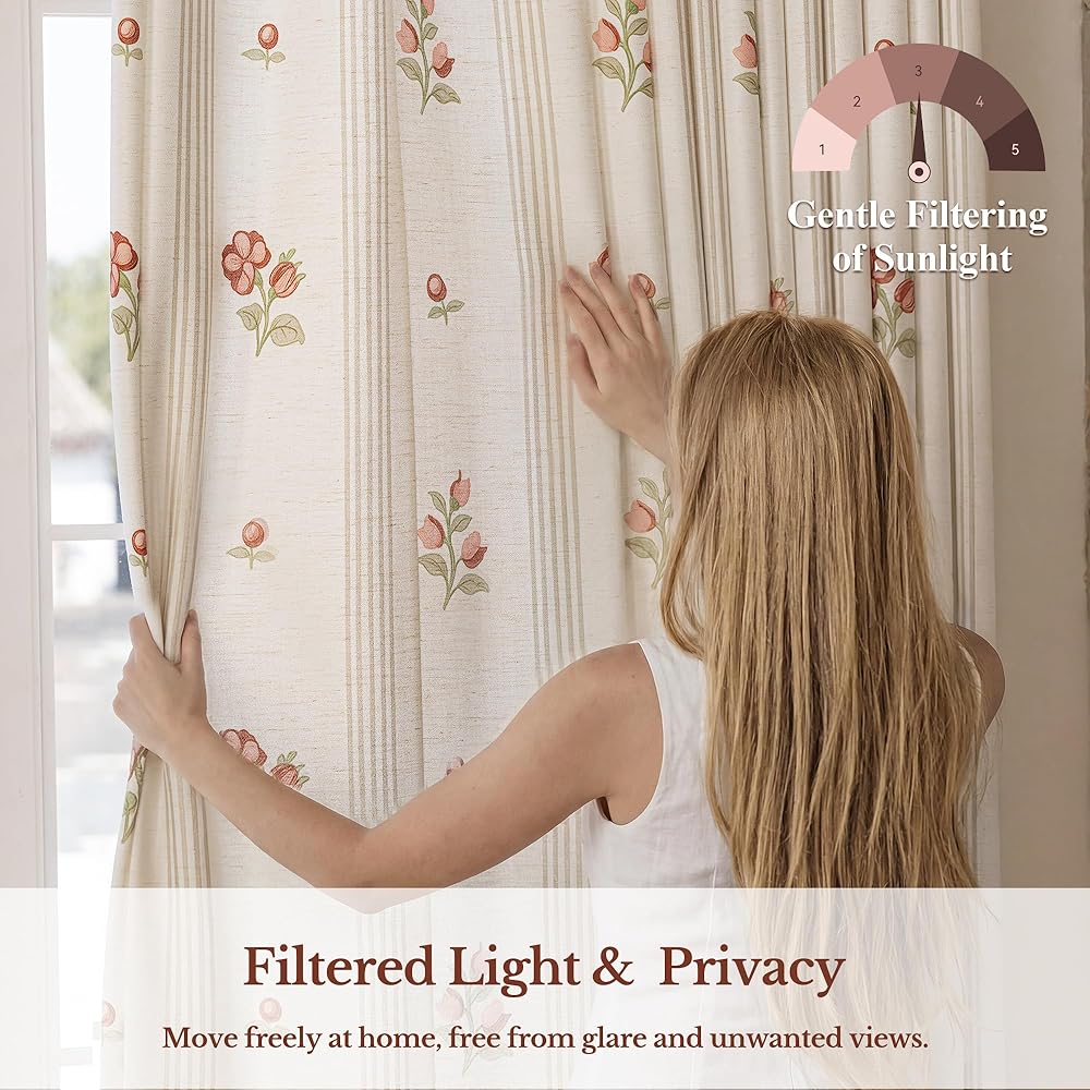 OEKO‑TEX Certified & Light Filtering Privacy Drapes - These curtains are OEKO‑TEX certified, free from harmful substances, making them safe and gentle for daily use—perfect for living room, bedroom, girls' bedroom, nursery, and farmhouse or cottage-style spaces. The light filtering fabric softens harsh daylight while enhancing everyday privacy, creating a cozy and comfortable home atmosphere.
