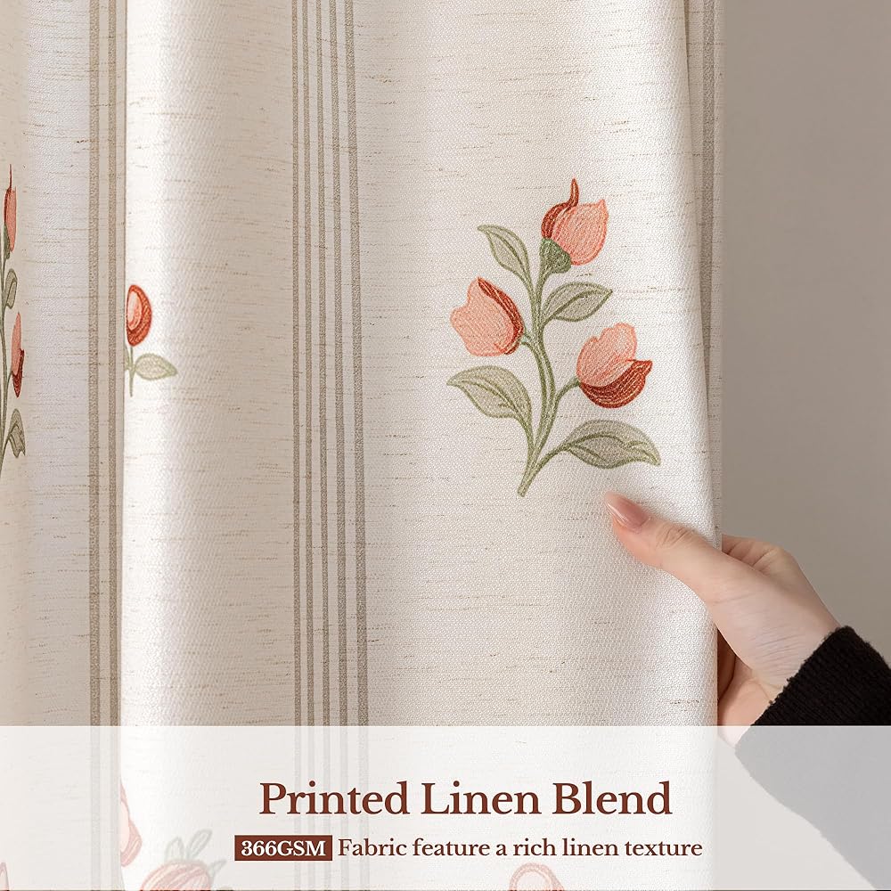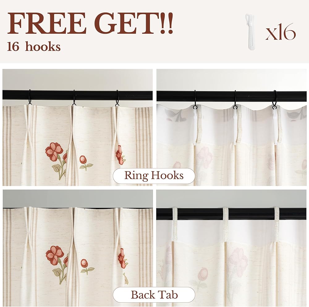 Adjustable Hooks & 2-Minute Quick Installation - Each set comes with adjustable hooks for easy hanging and flexible length control, fitting different window heights perfectly. With simple instructions and included hanging accessories, most people can complete installation in about 2 minutes—saving you time and letting you enjoy your new floral curtains right away.