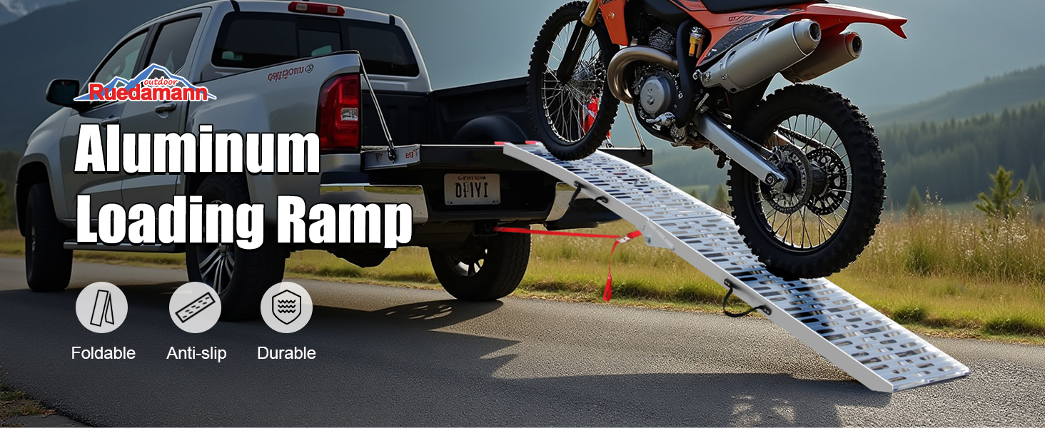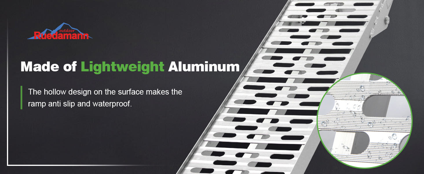 Unique Non-slip Textured Surface: Ruedamann truck ramp is built with a uniquely engineered ribbed anti-slip surface, created using an advanced precision pressing process that forms a durable, deeply textured, high-traction pattern directly into the aluminum, providing excellent secure, stable loading with good grip even in rainy weather or outdoors and helping reduce the risk of slipping during loading