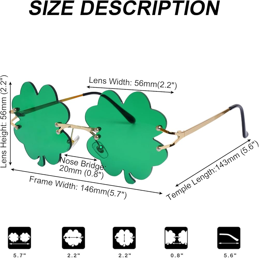 St. Patrick's Day four-leaf clover glasses and earrings are fun and stylish accessories. Perfect for St. Patrick's Day parties, St. Patrick's Day themed school events, and St. Patrick's Day family gatherings