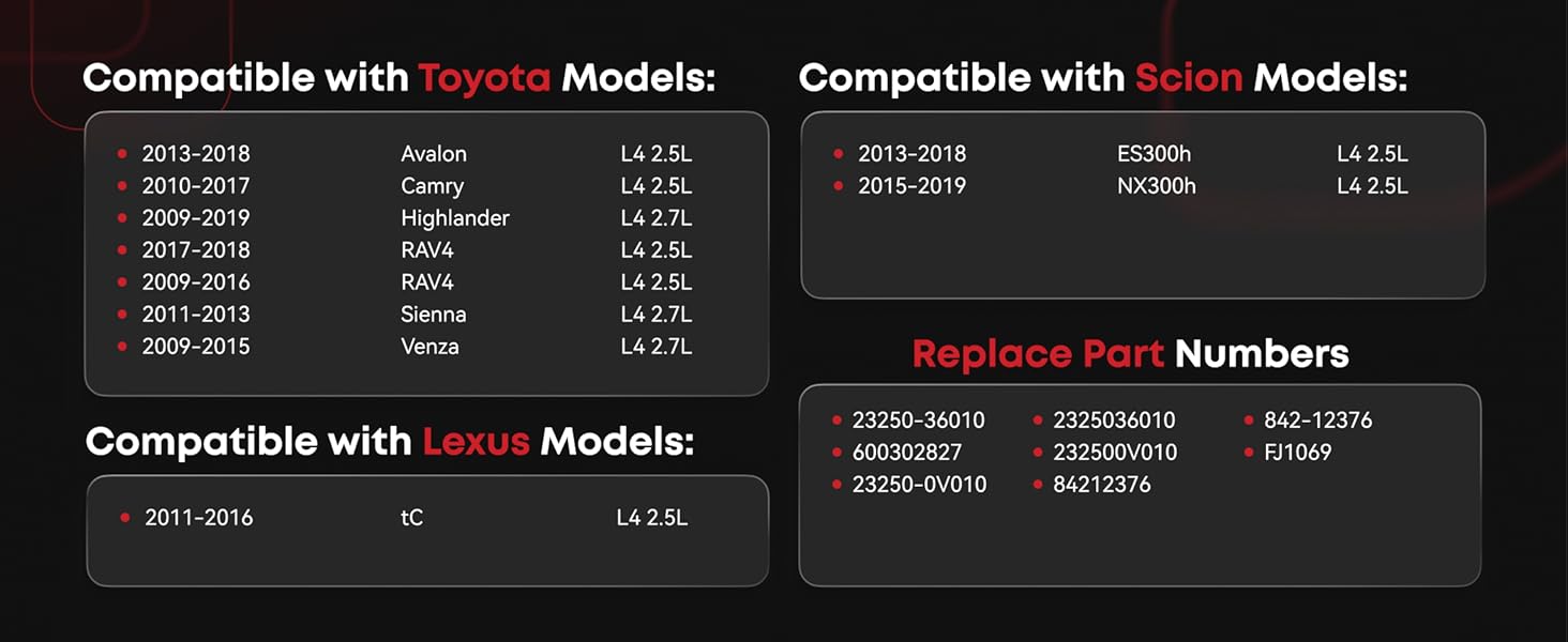 [Drive with Confidence]: Our Fuel Injectors come with a 1-Year, Unlimited-Mile Warranty. Plus, explore our full range of auto parts and accessories. Get everything you need to cruise worry-free.