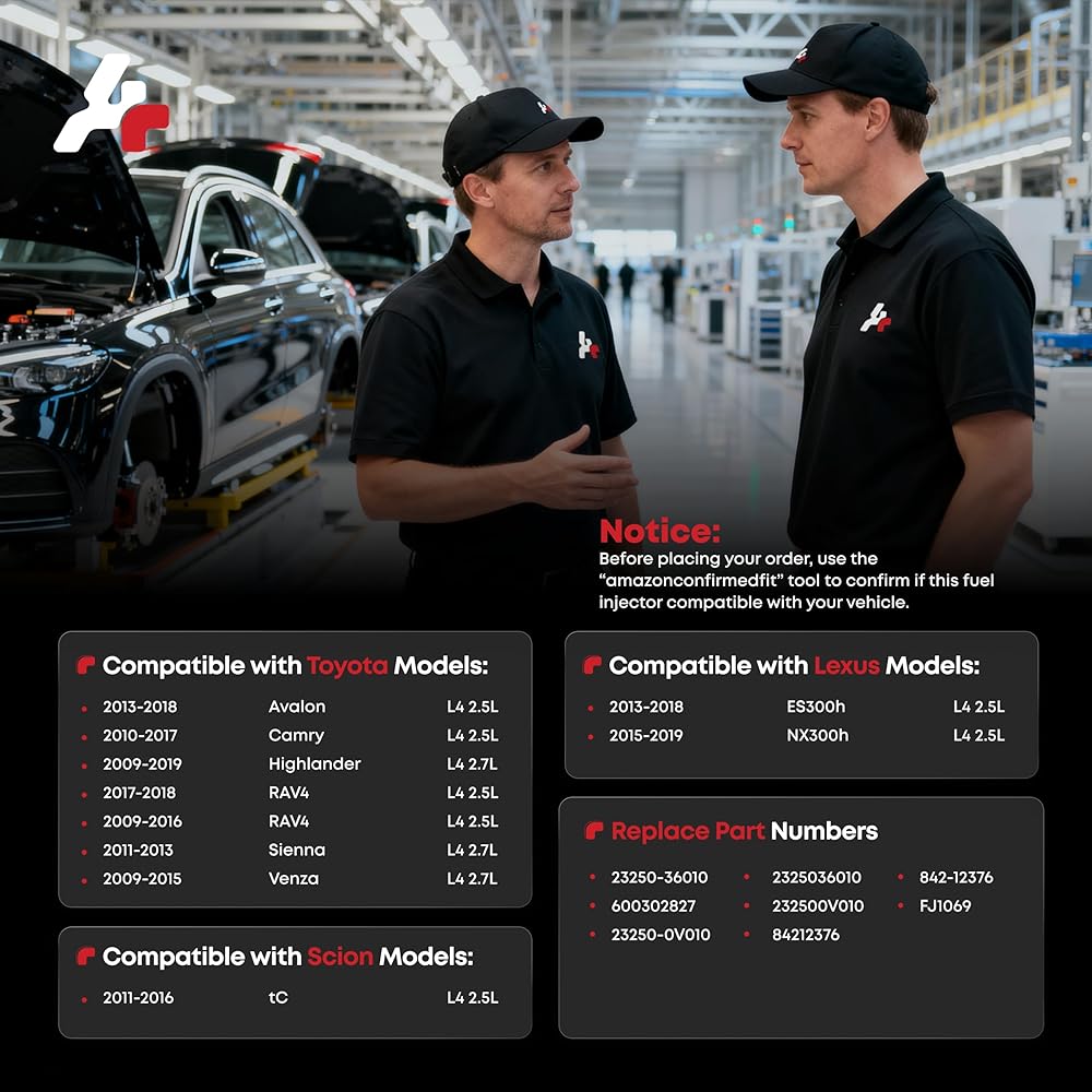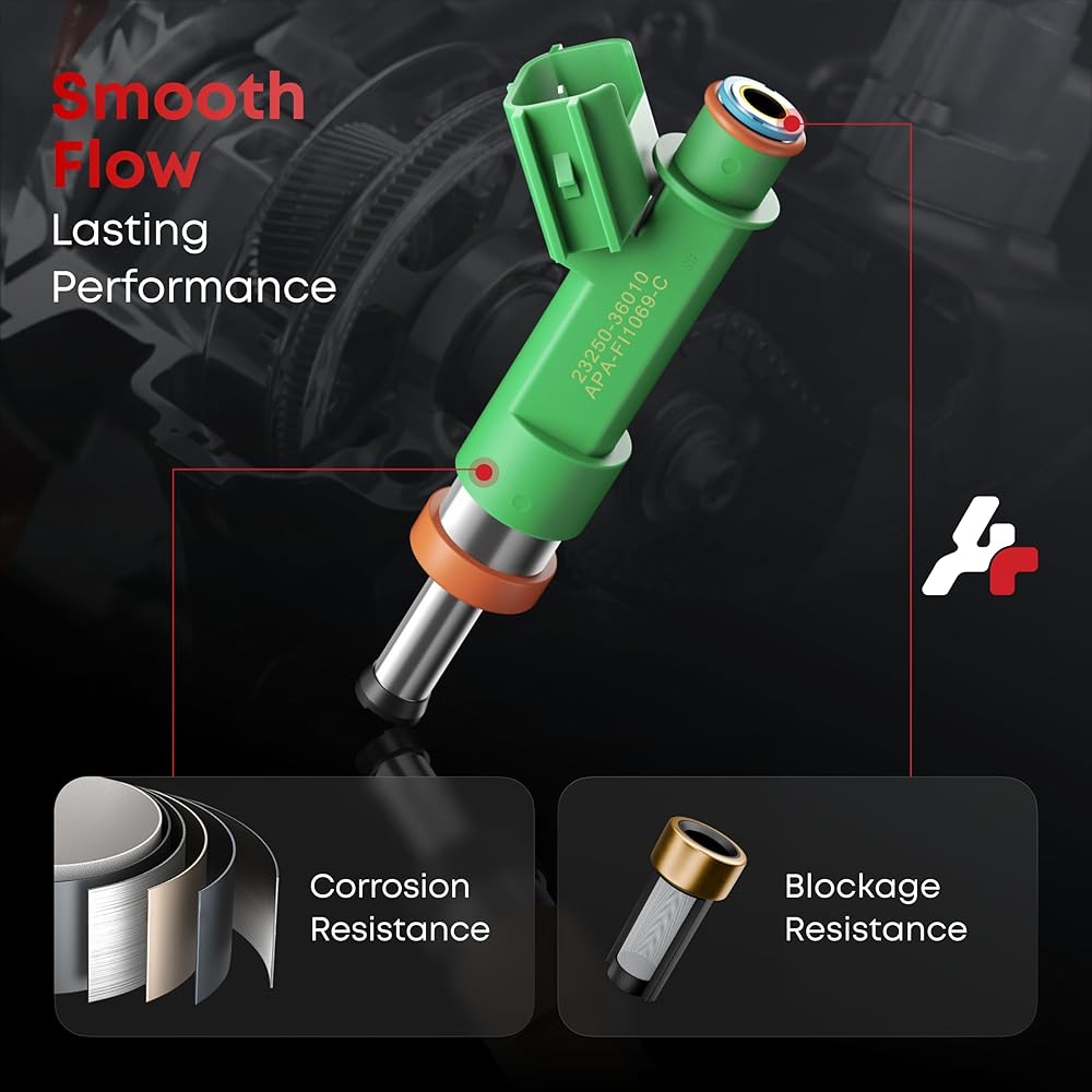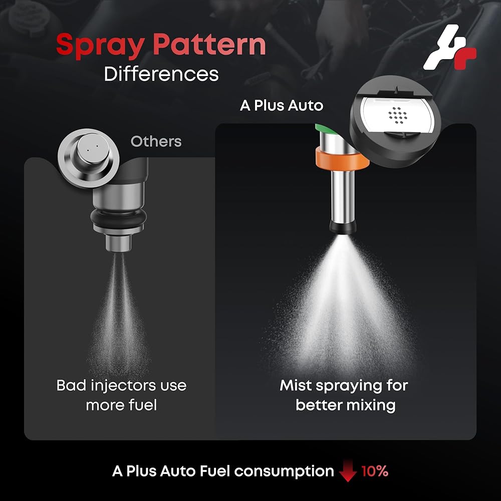 [Optimize Fuel Economy and Protect the Environment] A Plus Auto fuel injectors utilize a precision 12-hole nozzle and durable materials to ensure superior atomization, delivering smoother engine operation, increased power response, and better fuel efficiency.