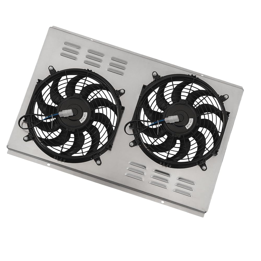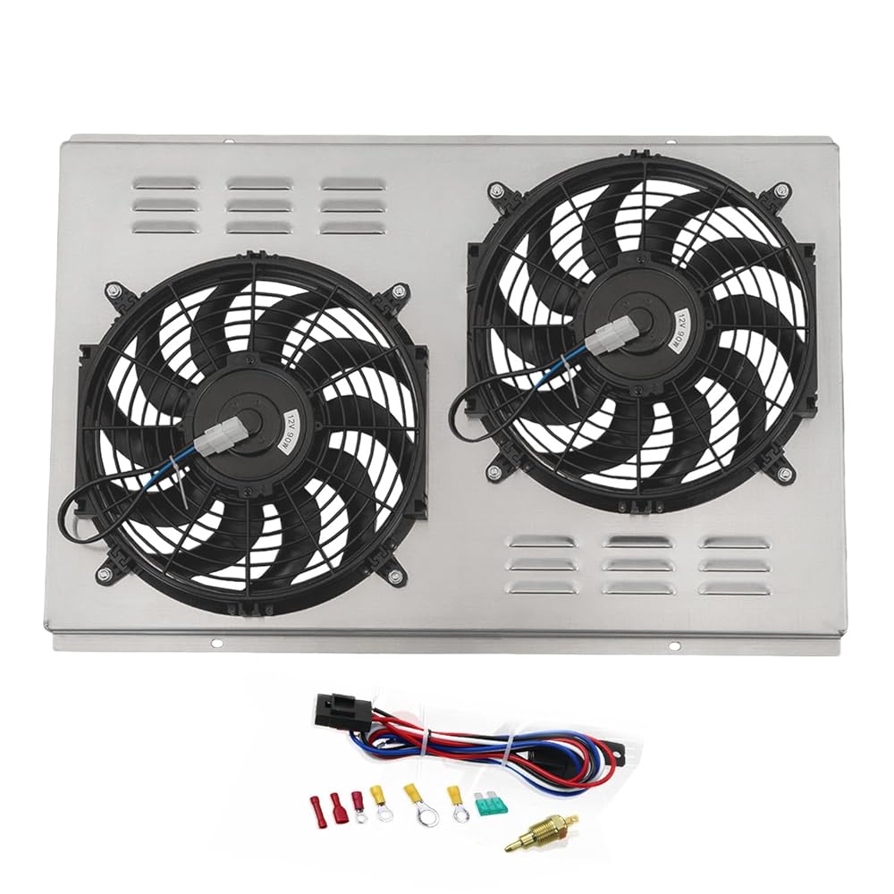1 X Aluminum Shroud, 2 X 12" Electric Cooling Fan(Includes mounting kits) w/ Relay wiring harness kit