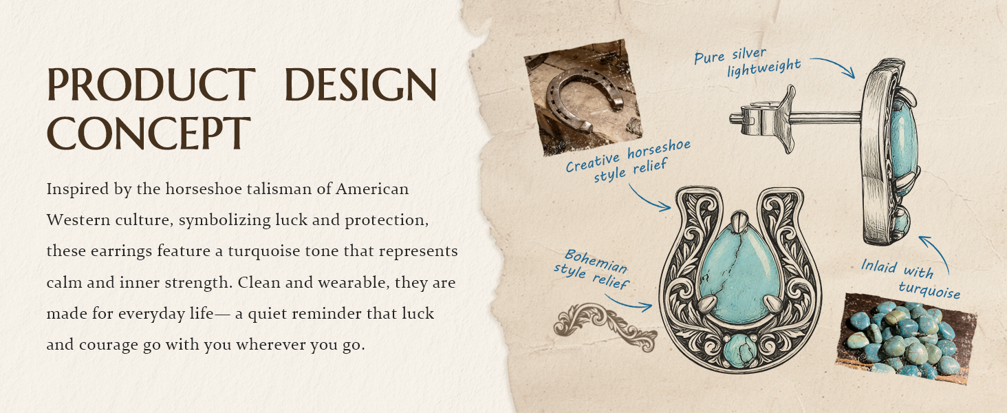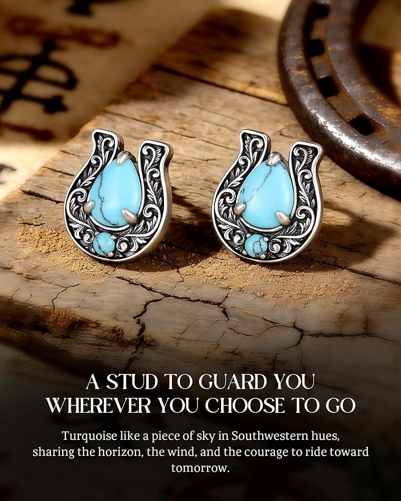 Material:Vintage turquoise horseshoe earrings is made of real 925 sterling silver + turquoise, which is nickel-free, lead-free, cadmium-free and hypoallergenic. Suitable for all skin types, even sensitive skin.