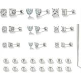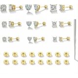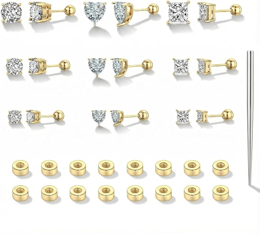 SECURE SCREW-BACK DESIGN: Round & Square & Heart CZ Studs feature a dazzling bling effect, combining trendy styles with a classic touch. Screw-Back design prevents earrings accidental falls, providing all-day confidence for any activity.