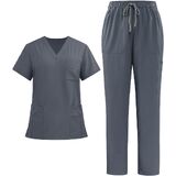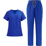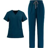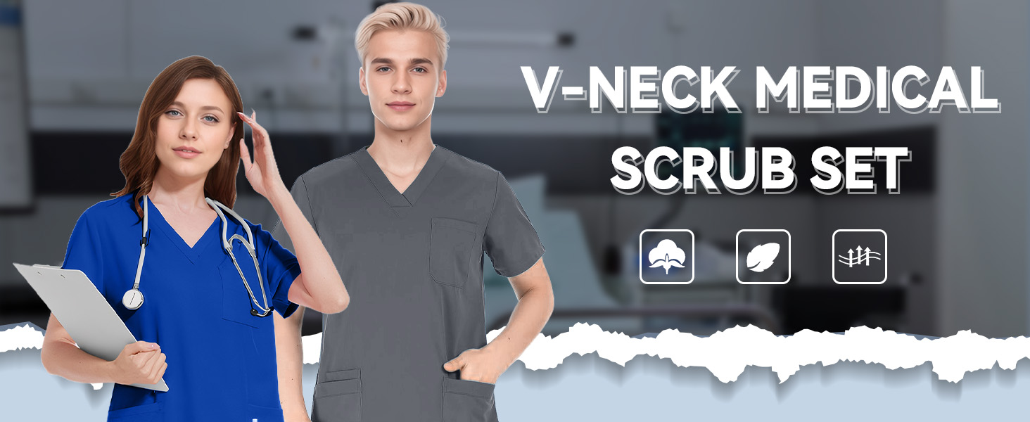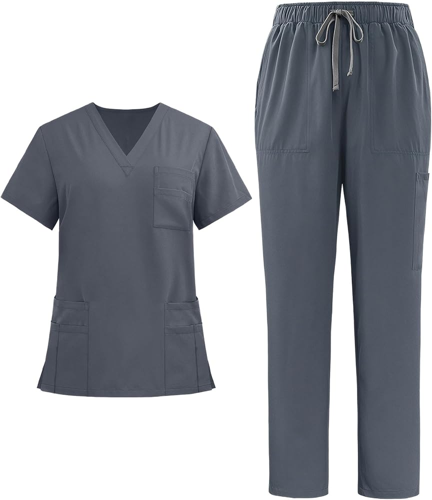 12-Pocket Functional Design:The V-neck scrub top features 8 strategically placed pockets (including pen slots & secure badge holders),combined with straight-leg pants offering 4 deep cargo pockets.Efficiently organize notes,tools,and personal items without hindering movement