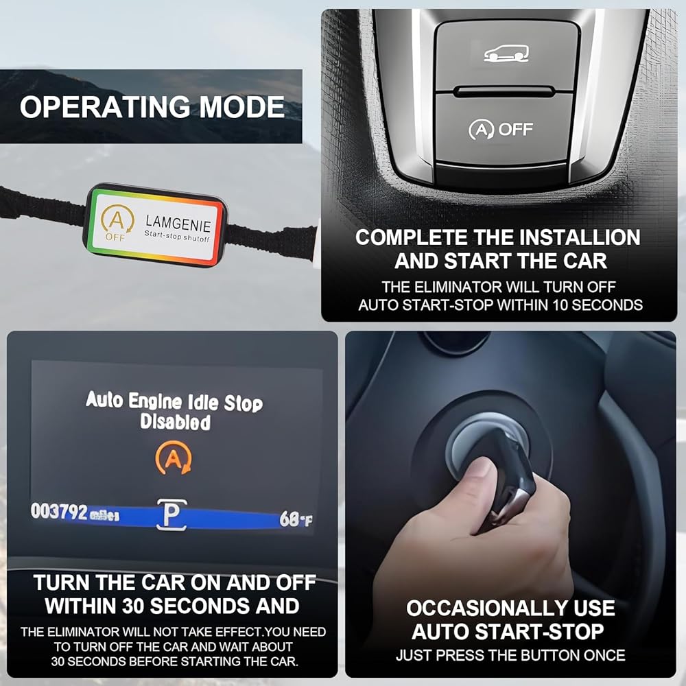 【Easy Installation】 Check out the last picture! It's plug and play—no error codes, no wire splicing, and no programming needed. Just remove the shifter panel, unplug the auto idle stop button connector, and plug the eliminator in between the button and the harness. No extra power wiring is required, so you won't lose any original car power. Plus, it keeps your factory remote start intact