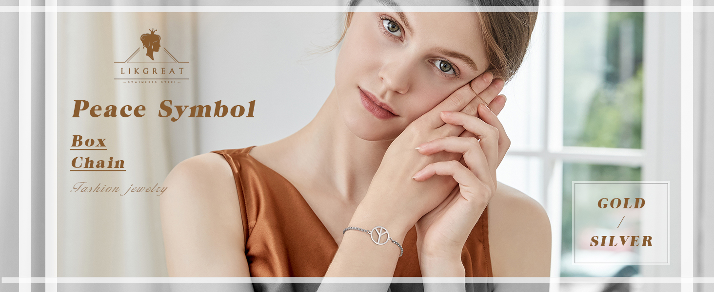 This peace sign symbol pendant is made of stainless steel. Chain length 6.69+1.96in. Lightweight and durable. No rusting and fading, always keep original color