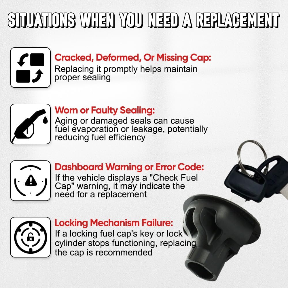 Superior Function:Works effectively in providing a tight seal to keep your vehicle's fuel tank closed, avoid oil leakage, blocks rainwater penetration, this locking fuel gas tank cap can ensure your safety, fuel economy and reduce vapor emissions.