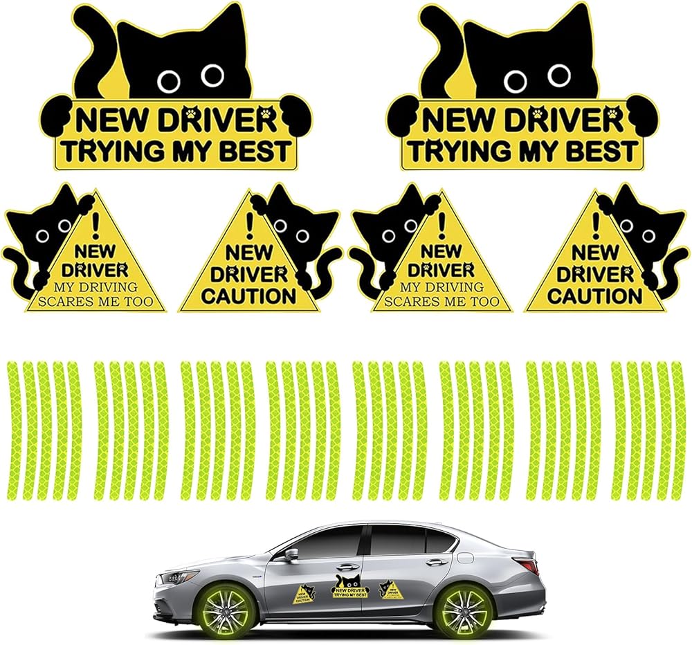 • High Visibility Design: Featuring three different slogans paired with a cute black cat design, these signs politely alert other drivers, providing an effective buffer for novice drivers