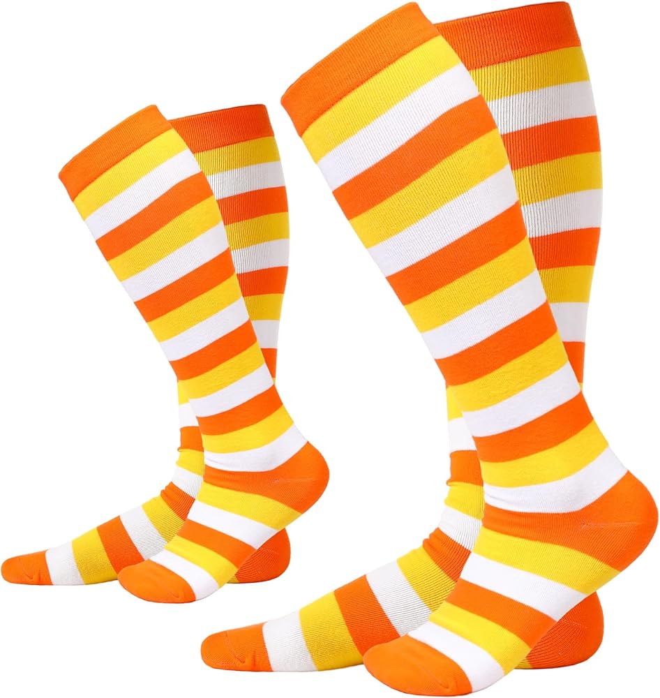 Package Contents: you will receive 2 pairs of corn striped knee high socks, with bright colors, you can use them for daily wear and changing needs, or you can share them with your friends and family