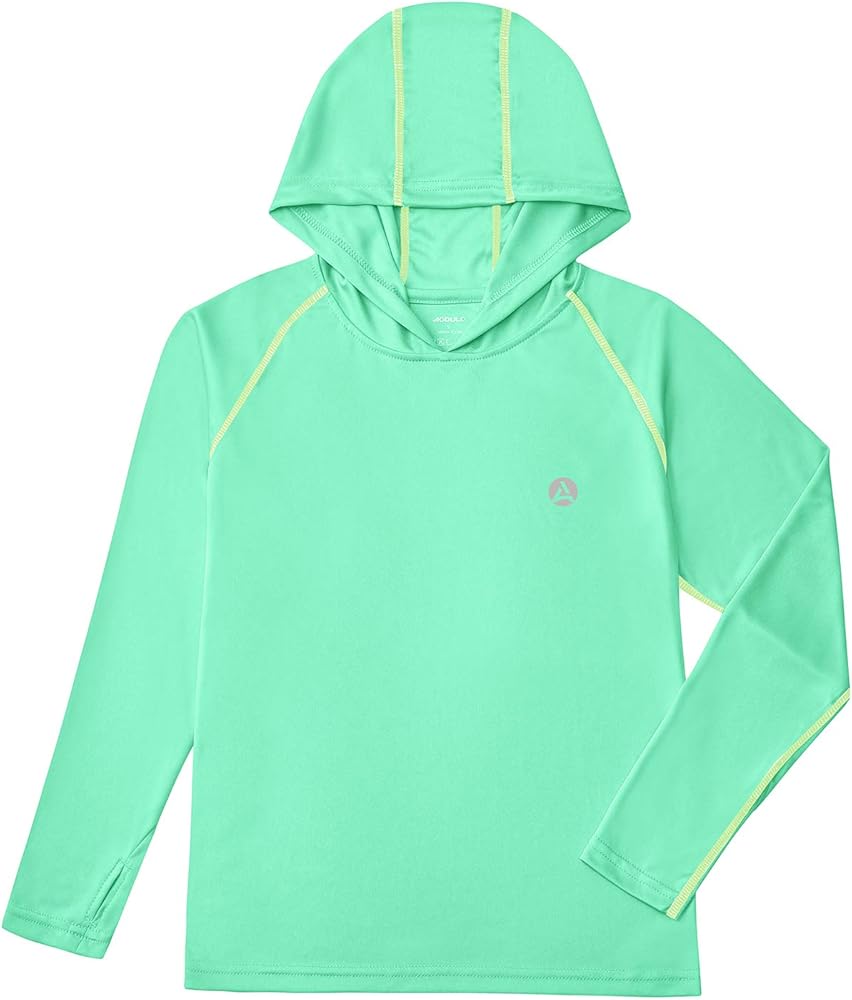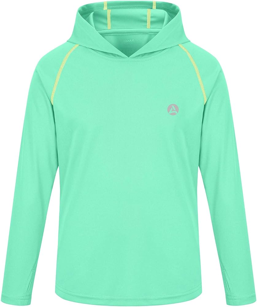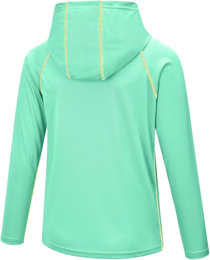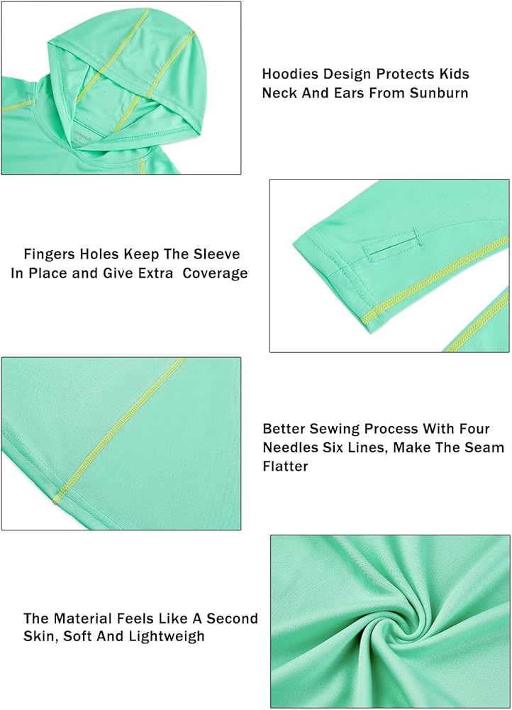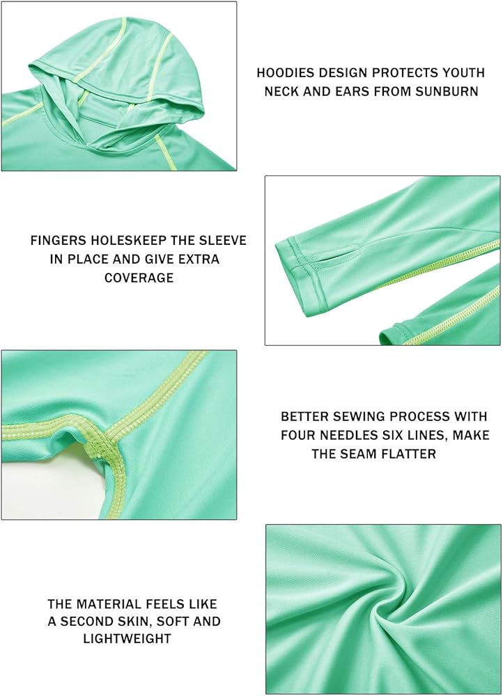 【Hooded & Thumb Holes Design】 - Long Sleeved Sunguard Shirt with hood provides extra sun protection for youth neck; Thumbholes keep sleeves in place and add a little more coverage in hot weather.