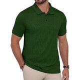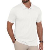 CLASSIC DESIGN - This short sleeve polo features a classic lapel collar with 3 buttons, textured pattern that adds visual interest and refined detail to your casual wardrobe