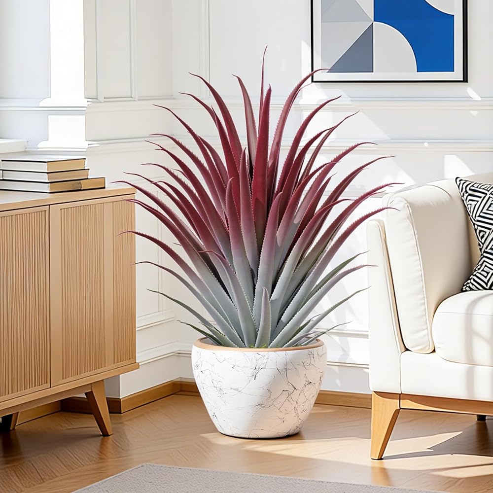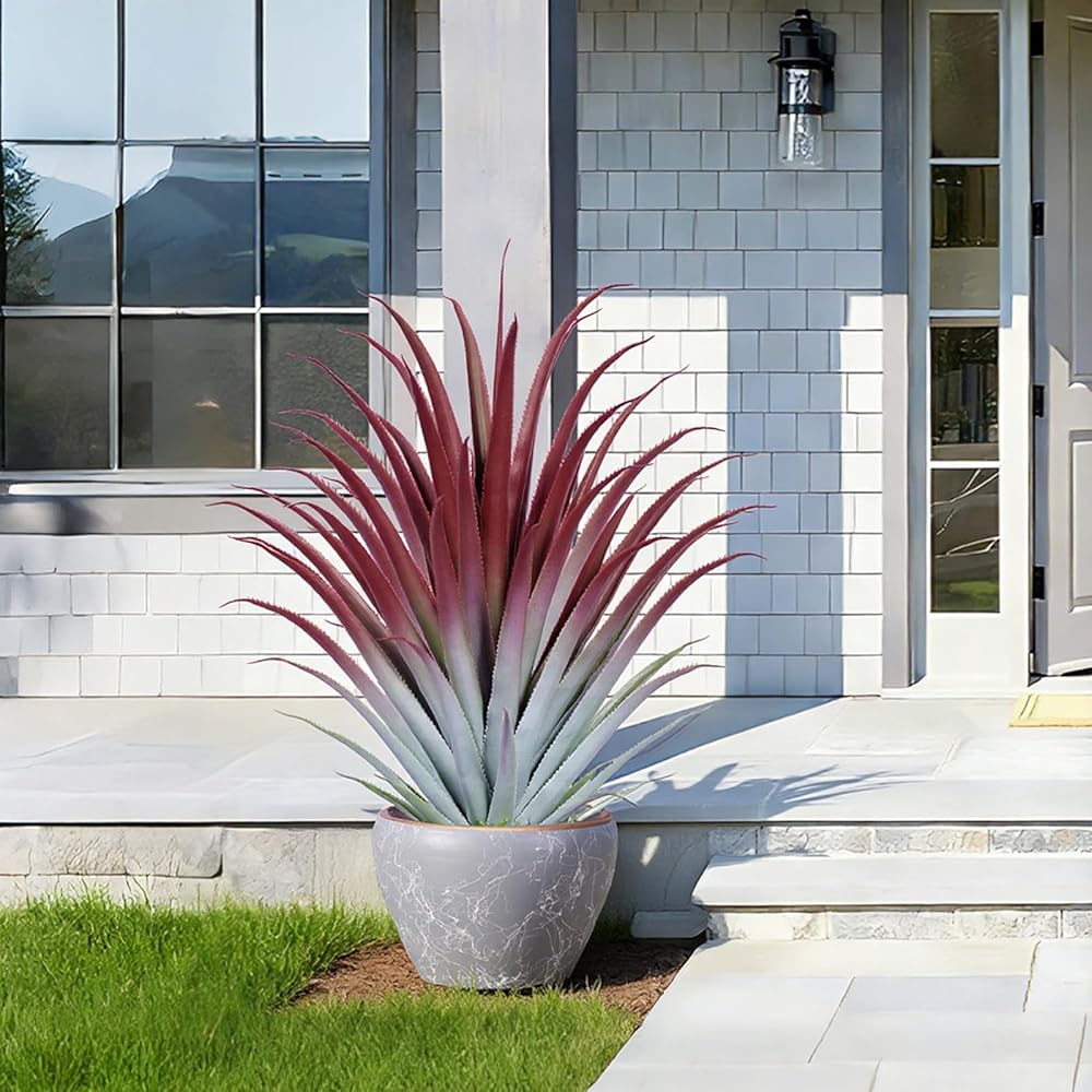 Lifelike Design & Vibrant Color: This 26" Red Aloe Vera Faux Plant features 61 intricately designed leaves with a stunning red hue, mimicking the natural beauty of a real agave. This large succulents artificial plant's realistic appearance makes it one of the best realistic fake plants available.