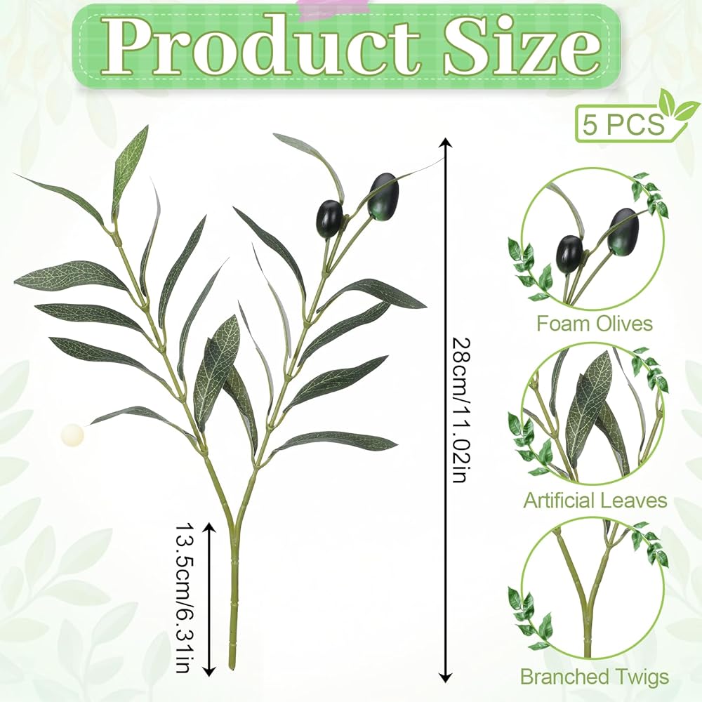 This set of 5 meticulously crafted faux olive branches is designed to provide the lush, natural look of real olive plants without any of the upkeep.