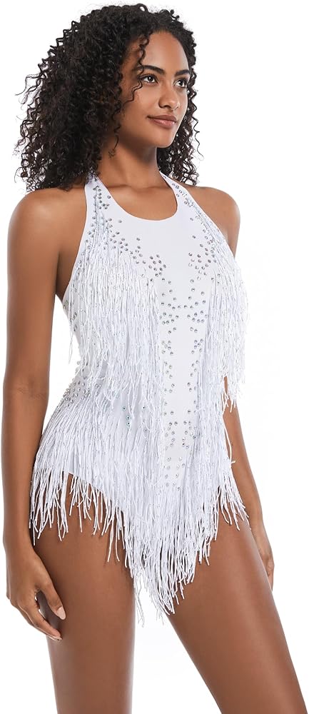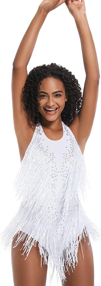 Versatile For Various Occasions: This Bedazzled Body Suit Is Perfect As Birthday Party Outfits, Drag Queen Ensembles, Cheerleader Uniforms, Or Showgirl Costumes. It Shines At Jazz Performances, Vegas Shows, And Carnival Events, Ensuring You Stand Out. Eye - Catching Fringe Design: Featuring Flowing Fringe That Moves Gracefully As You Dance, This Costume Enhances Visual Appeal. The Fringe Combines With Crystal And Sequin Embellishments, Making It A Standout For Showgirl Acts Or Carnival Parades.
