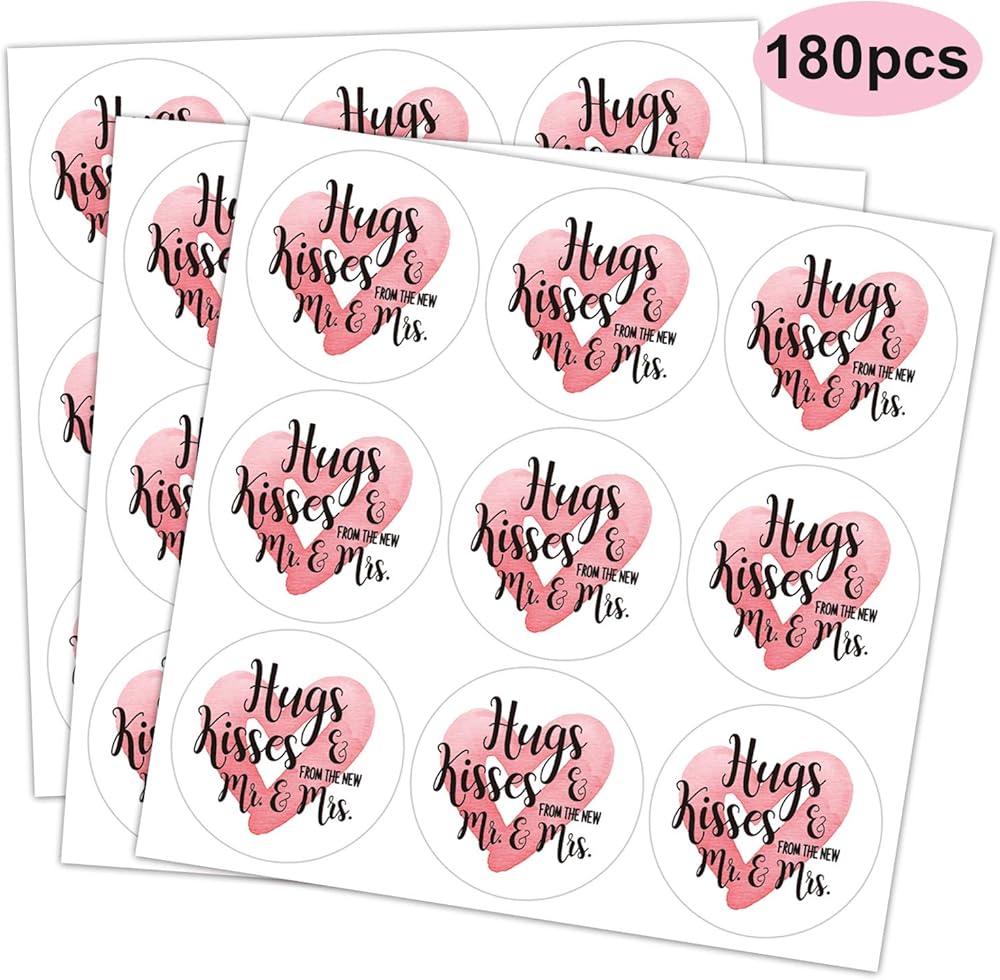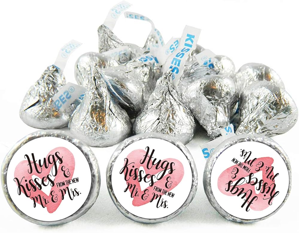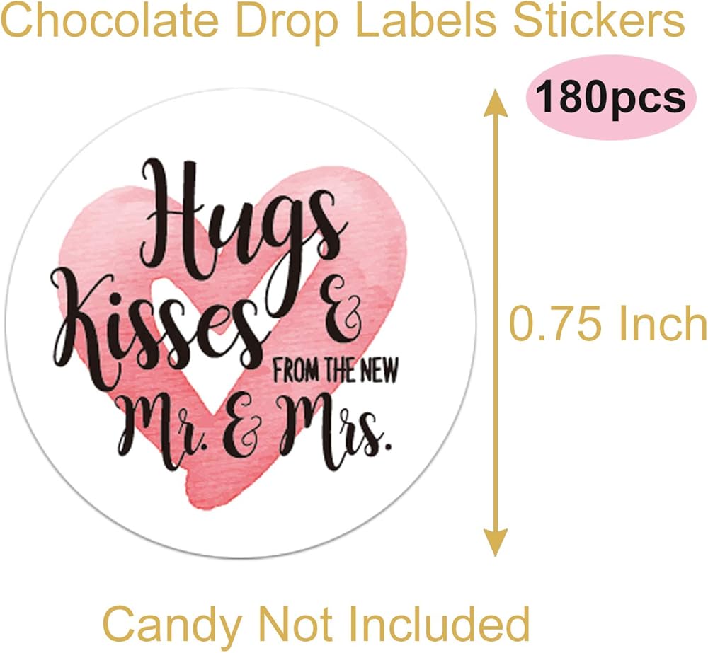 Chocolate Drop Labels Stickers, Hugs & Kisses from The New Mr. & Mrs., 180 Count, Fits Hershey's Kisses Party Favors, Wedding Stickers, Perfect for Weddings, Bridal Shower Engagement Party.