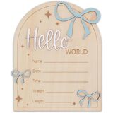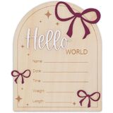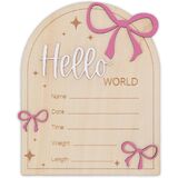 Capture your baby's first moments in the most meaningful way with this Hello World wooden birth announcement sign. Designed to record your newborn's name, birth date, time, weight, and length, this keepsake turns precious birth details into a timeless memory. Crafted from natural wood with engraved details and layered 3D lettering, the sign features delicate pink bow accents that add a soft, sweet touch. Perfect for newborn photography, hospital photos, or cozy at-home sessions, it beautifully complements neutral and pastel nursery styles. After photos are taken, the sign becomes a lovely nursery decor piece, displayed on a shelf or dresser to celebrate your baby's arrival every day. Whether you're welcoming your own little one or searching for a thoughtful baby shower or newborn gift, this keepsake is made to be cherished for years.