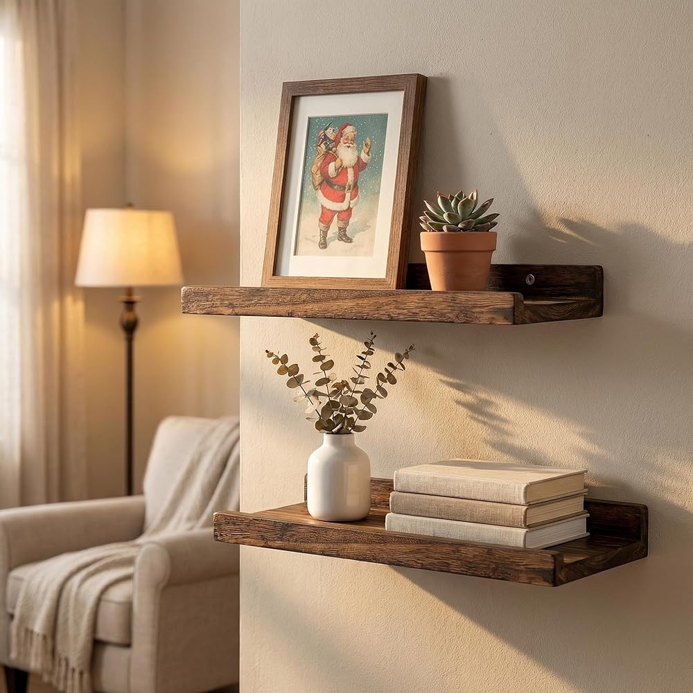 Bring Quality and Style to Your Every WallThe HAOIOKSC Real Wood Floating Shelves are more than just storage; they are a lifestyle choice for those who value quality. Crafted from genuine solid wood, these shelves provide a stable and beautiful stage for the things that matter most to you.Why You'll Love Them: