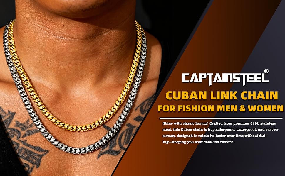 【Stylish & Versatile Design】 – This stainless steel Cuban link chain is perfect for both men and women, offering a bold and trendy look. Available in 3 widths (5mm, 6mm, 8mm) and 3 lengths (20in, 22in, 24in) to suit any style preference.