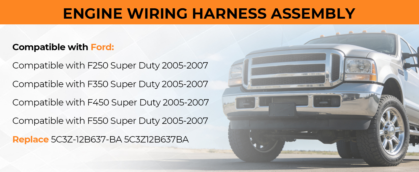 【Fitment】 This Engine Wiring Harness Assembly Compatible With Ford F-250/F-350/F-450/F-550 2005-2007, part number replace 5C3Z-12B637-BA 5C3Z12B637BA.